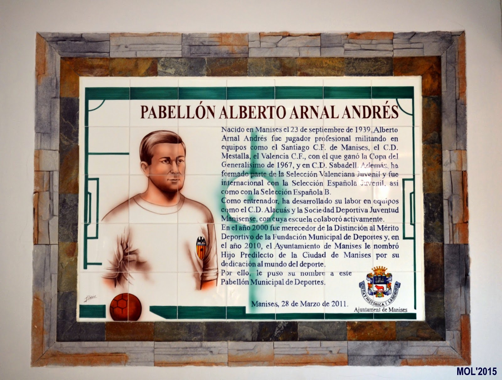 Este edificio situado en el Barrio San Jerónimo de Manises, es el Pabellón que el pasado día 10 de Marzo fue inaugurado por el Manisero Ilustre, el futbolista Internacional Alberto Arnal Andrés, acompañado por el Alcalde de Manises, el Presidente de la Diputación de Valencia y por el Presidente de la Generalitat Valenciana.