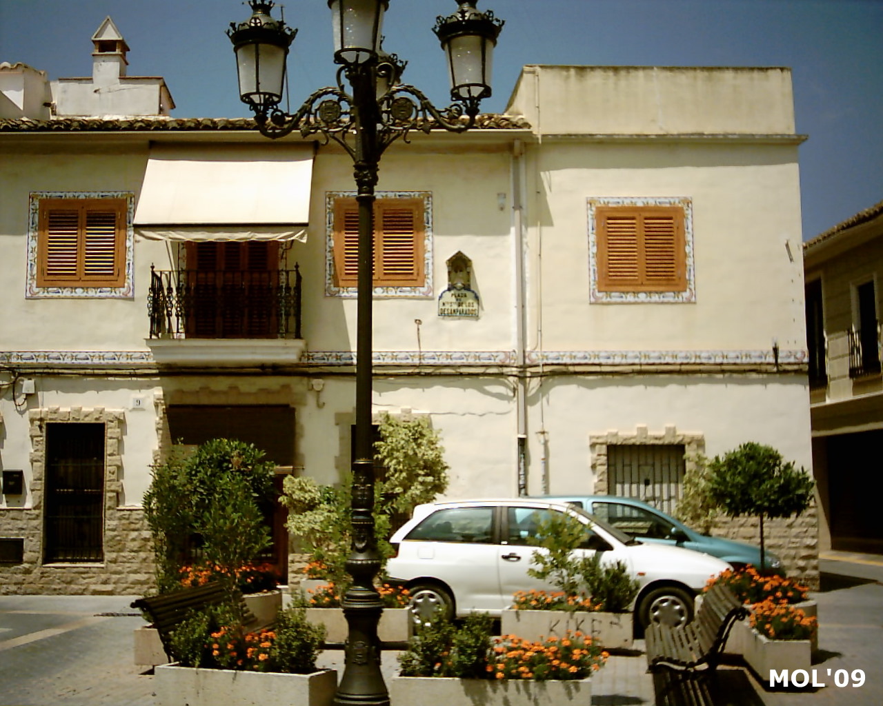 Casa donde nació José Rodrigo Botet en la Plaça del Rellat o Plaza de la Virgen de los Desamparados de Manises. En la fotografía se puede ver el mural de azulejos que el Ayuntamiento de Manises colocó en el homenaje que se le tributó.
