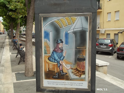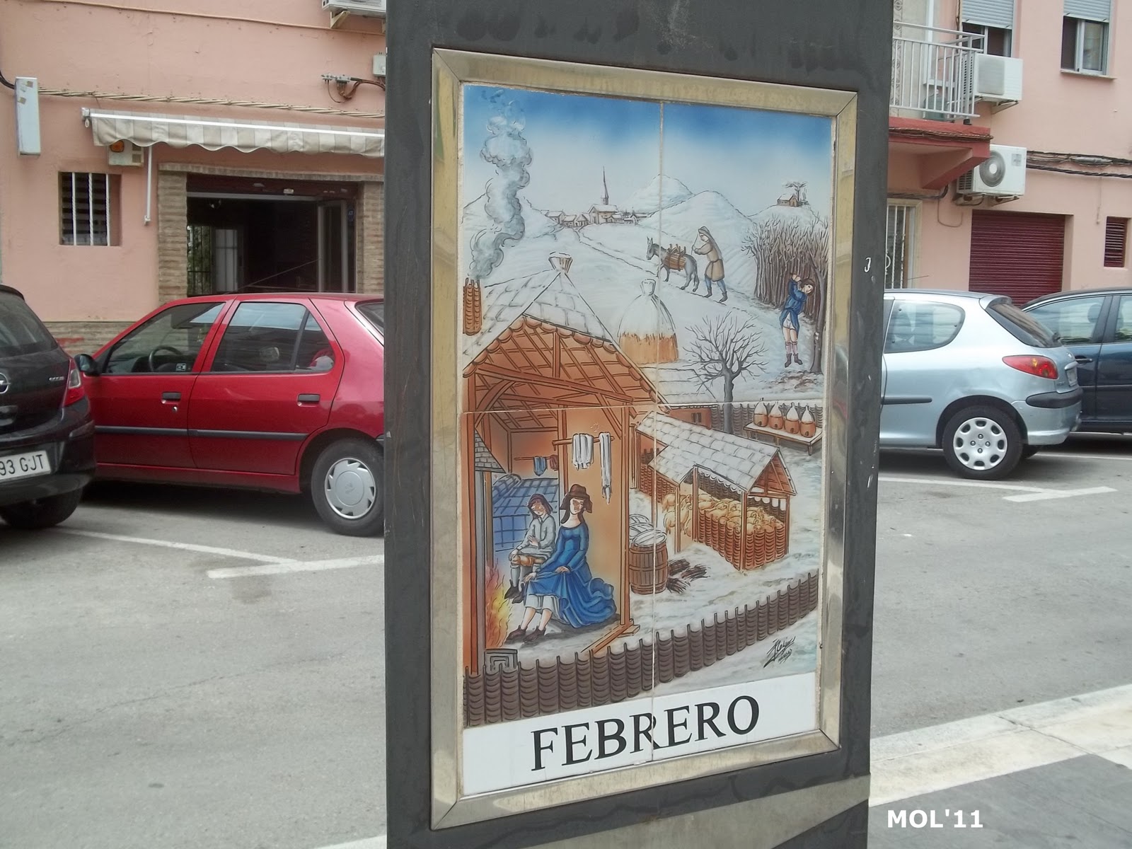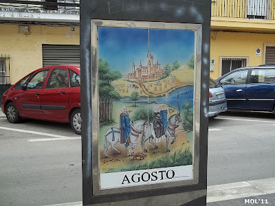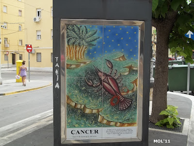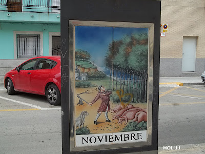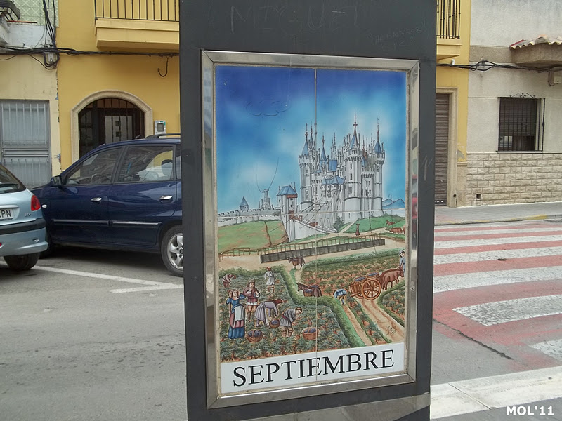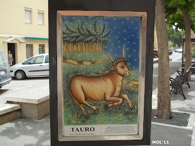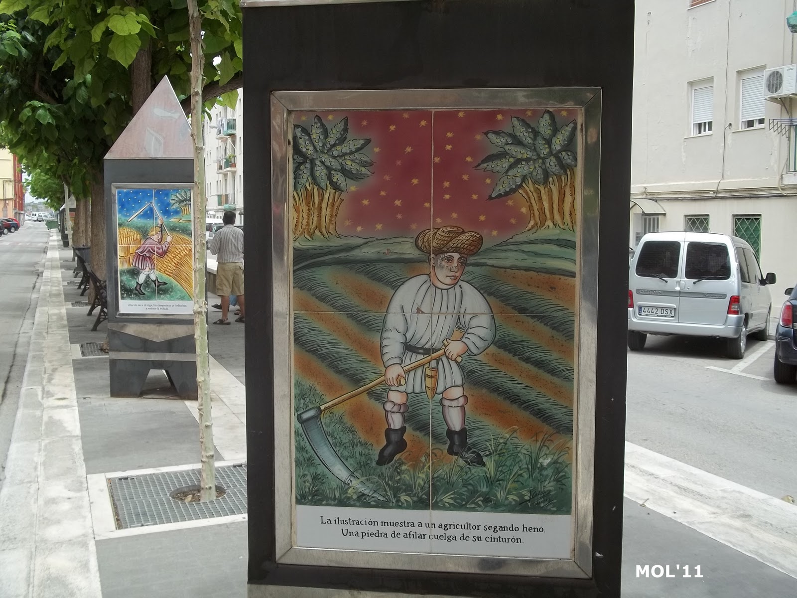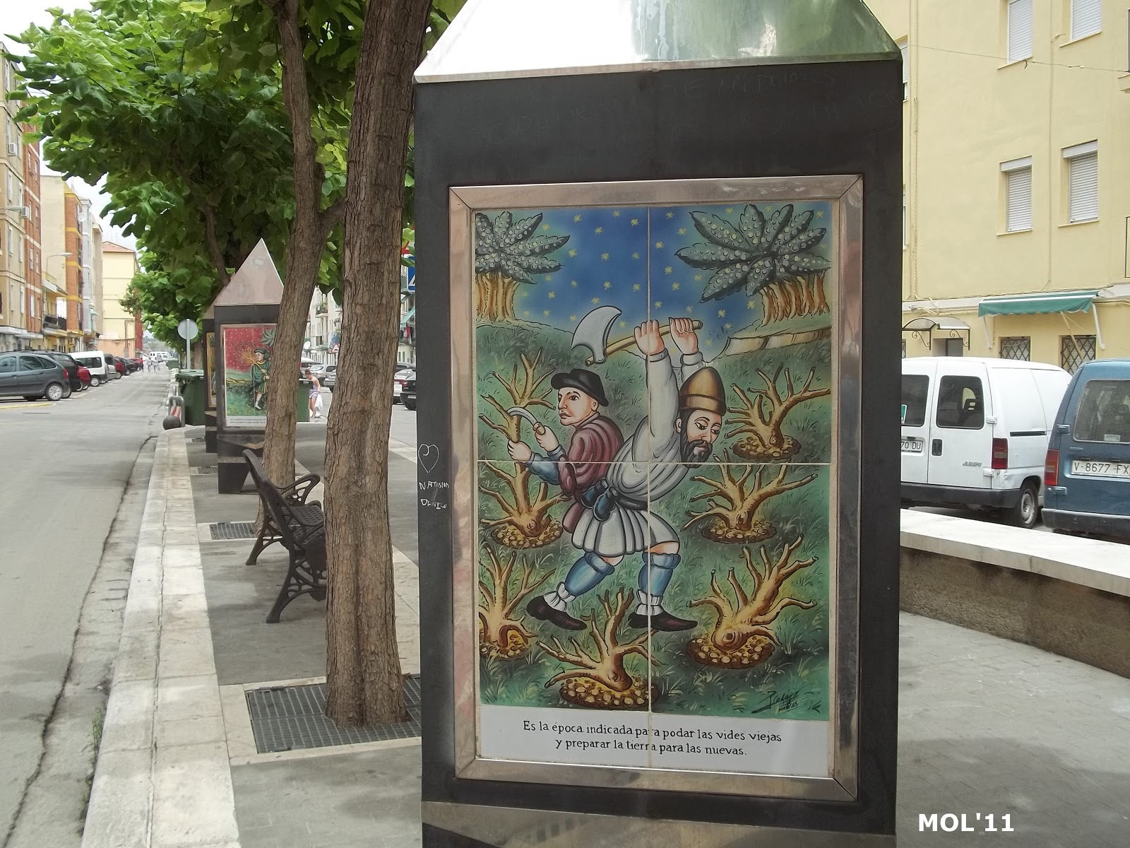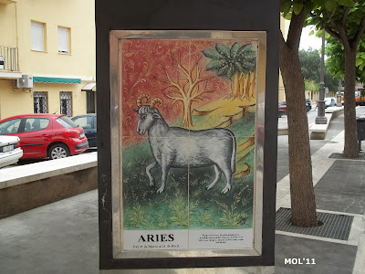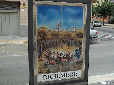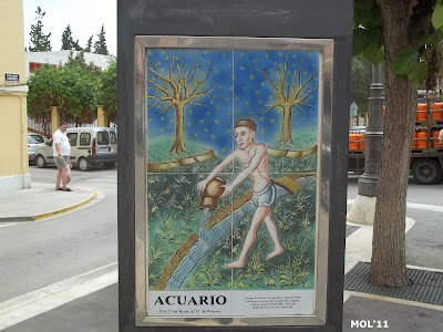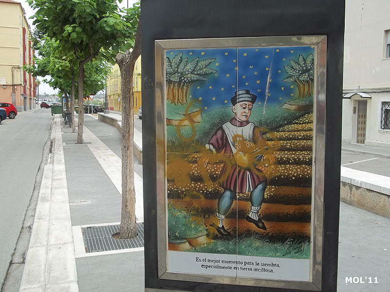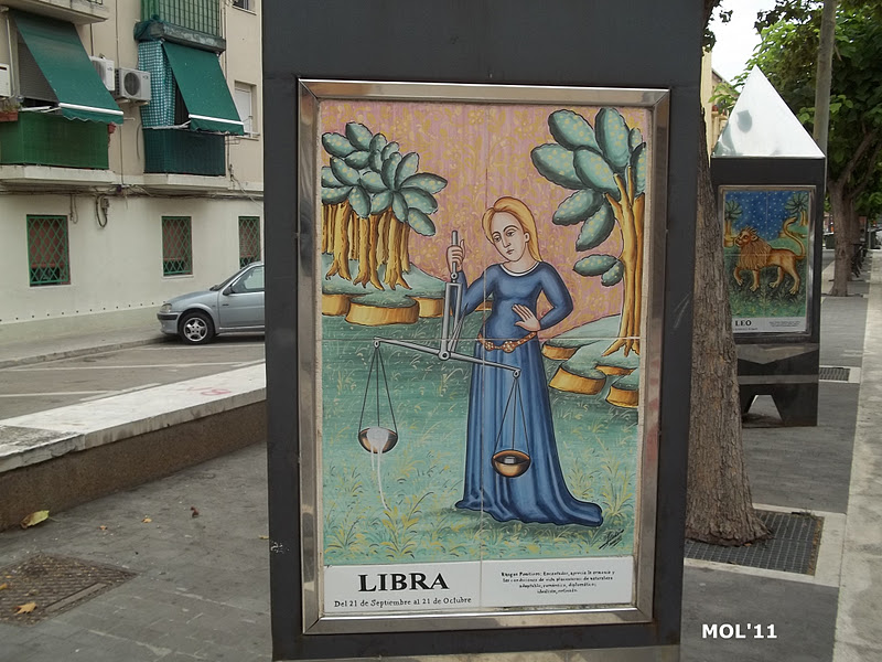 Adornos de cerámica que se encuentran en el centro de la calle, en la parte peatonal y que se intercalan entre los árboles. El pintor es Juan Colón y consta de tres partes. El triángulo -con base y soporte de metal- por una parte se encuentra el mes: de Enero a Diciembre. Por la otra se encuentra el signo del zodiaco, y por la tercera cara se muestran escenas agrícolas, según la época.