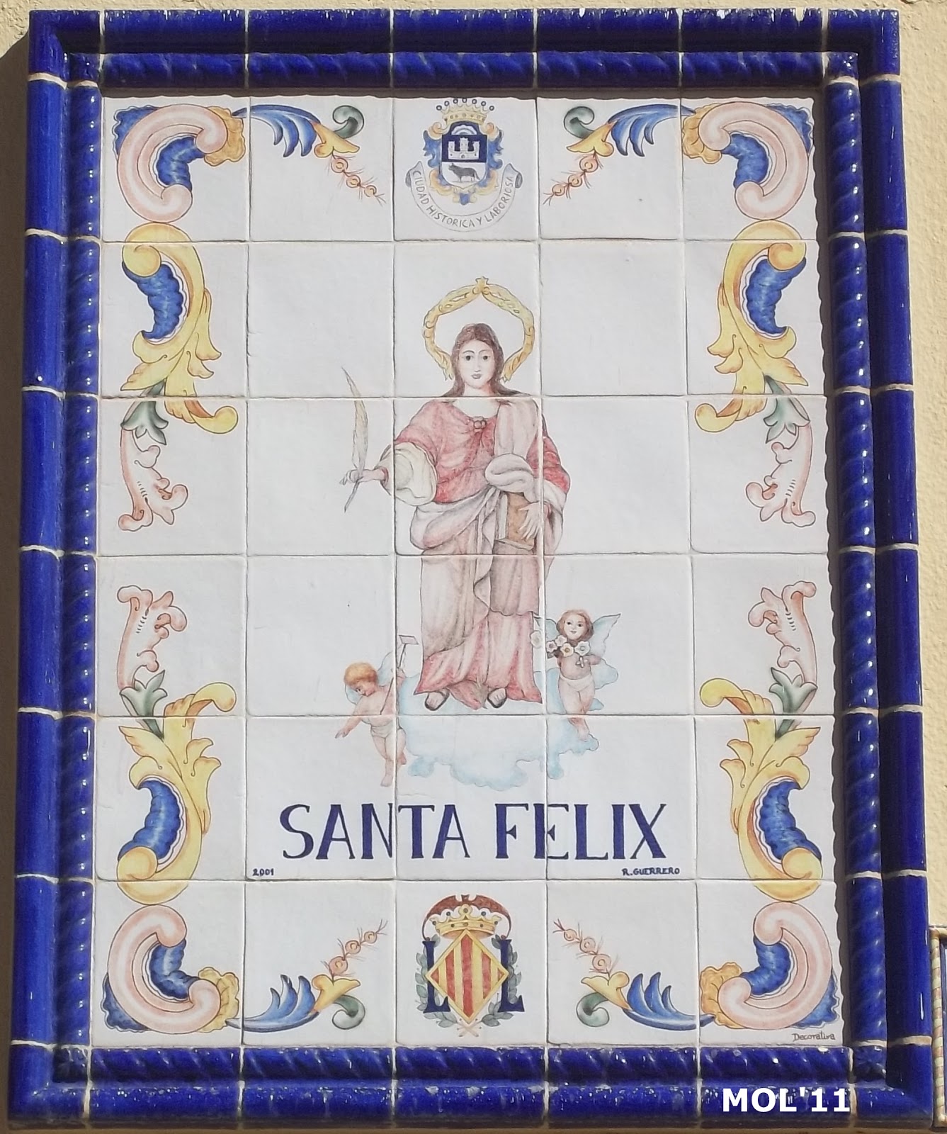 Cuadro de azulejos pintado y donado al Barrio de Santa Félix, por Rafael Guerrero, pintor manisero que vive en el Barrio Santa Félix, y que se muestra la imagen del titular de la calle. Pueden ver su biografía en este blog.