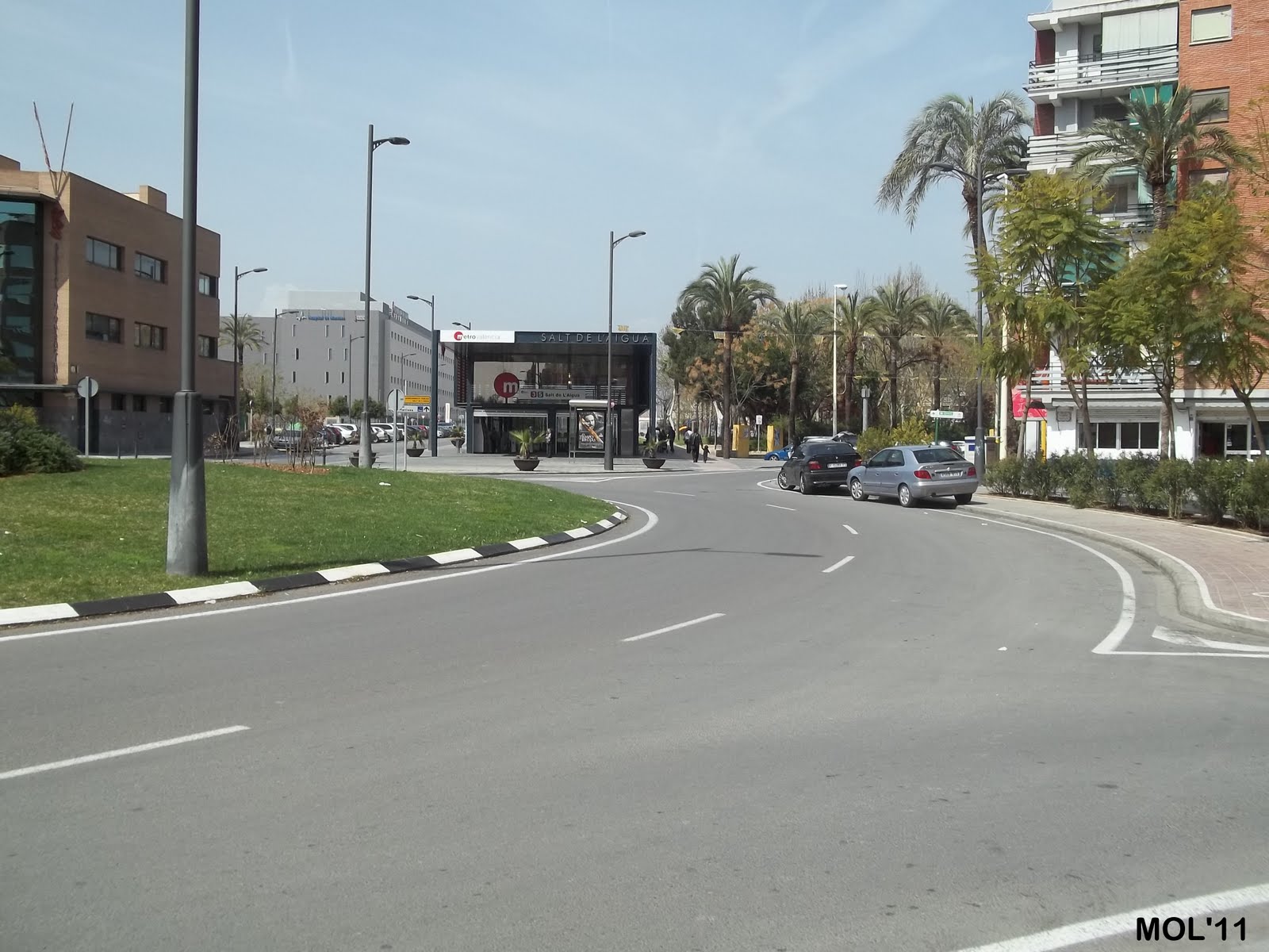 Rotonda que une Quart de Poblet con Manises. A la izquierda el edificio de los Juzgados, en medio el Hospital de Manises, y en frente la parada del METRO SALT DE L'AIGUA, al lado el Parque del Ferrocarril.