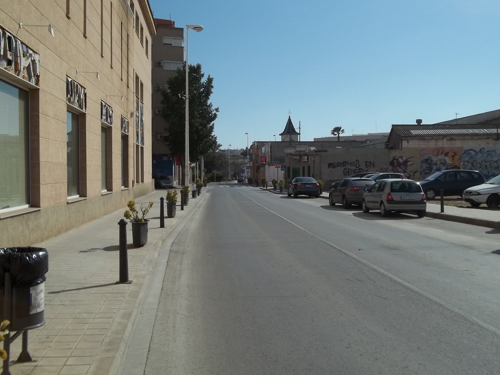 Termina o empieza, la calle de Valencia. A la derecha lo que antes era el Edificio de la Arriba. Hoy derruido. Llegado a este punto a la izquierda (mirando la foto) dirección a Paterna. A la derecha entrada a Manises.