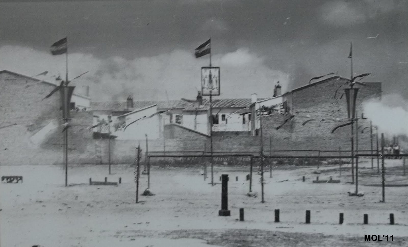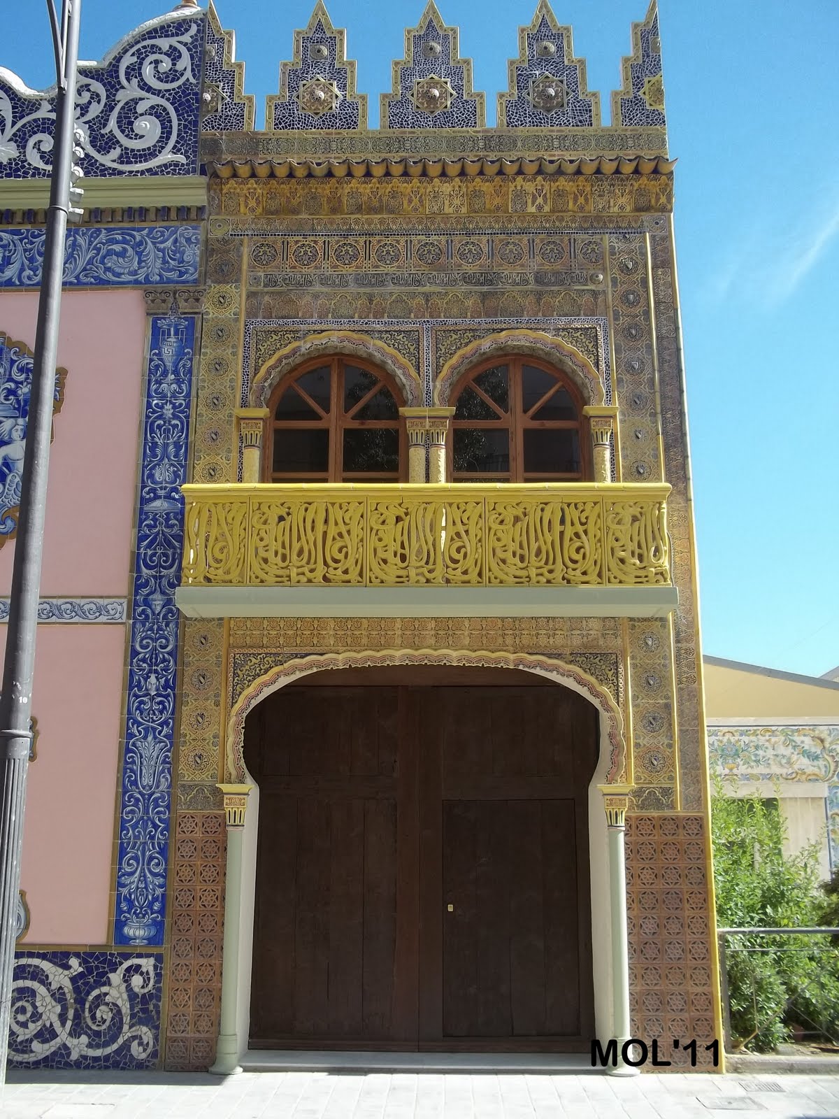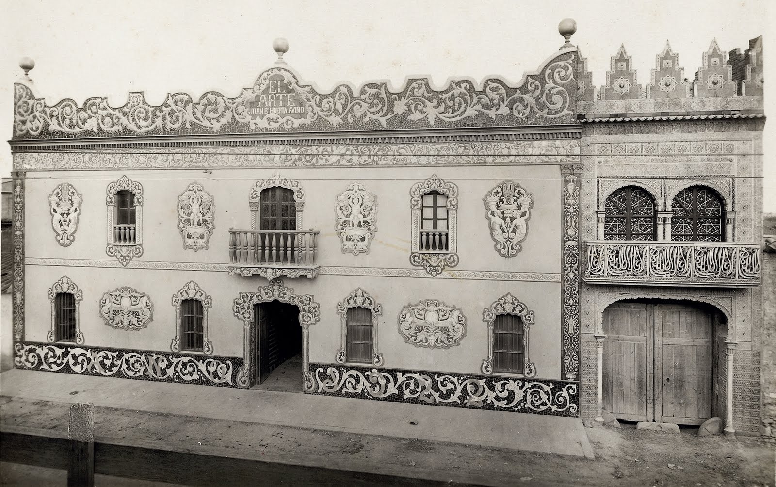 Com es pot vore, la frontera -antiga fabrica de Juan Bautista Huerta Aviñó- es dividix en dos parts, la primera i pintà en blau, es la que es va construir el l'any 1922, i posteriorment en l'any 1924, es va afegir la part mes moruna i en una decoracio especial que recorda a la decoracio de l'Alhambra de Granada.