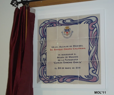 El Regidor Francisco Gimeno Miñana iniciant els parlaments i agraïnt a tots la seua aportacio per a que poguera fer-se est acte. En inicitiva de l'Ajuntament i l'ajuda dels fondos de la Diputacio de Valencia i del Plan E, dels ceramistes restauradors, de les donacions rebudes, especialment a Carlos per la seua coleccio particular de maquines i fotografies, aixina com a totes les persones que han colaborat a que es poguera complir est ensomi, tants anys esperat.
