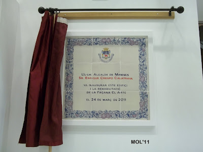 El passat dijous va tindre lloc l'inaugracio del Centre Cultural ”El Arte" de Manises, en presencia d'una gran cantitat de manisers que vullguerem estar presents en est acontenyiment tan important – i esperat des de fa mes de 25 anys – que ve a fer justicia a un edifici que encara que és i era chicotet, ha segut ampliat per la part dreta i per darrere, per dalt, fins aplegar als 1500 m2.