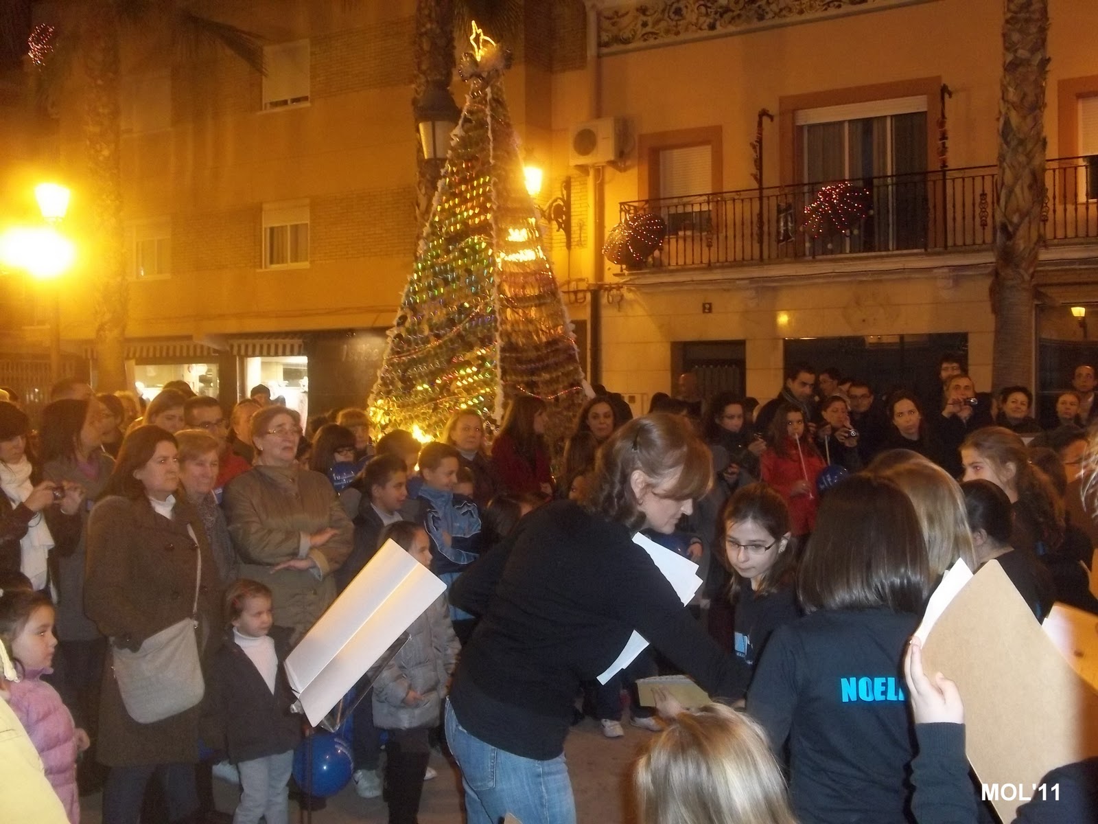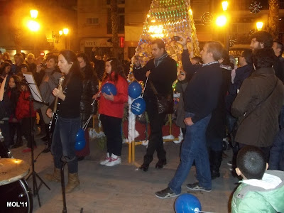 Desde las 7 de la tarde hasta las 10 de la noche fueron varios los grupos y asociaciones que actuaron cara al público asistente, teniendo como fondo un árbol de Navidad, hecho con CD's usados, y que fue todo un éxito, tanto de participación como de público.