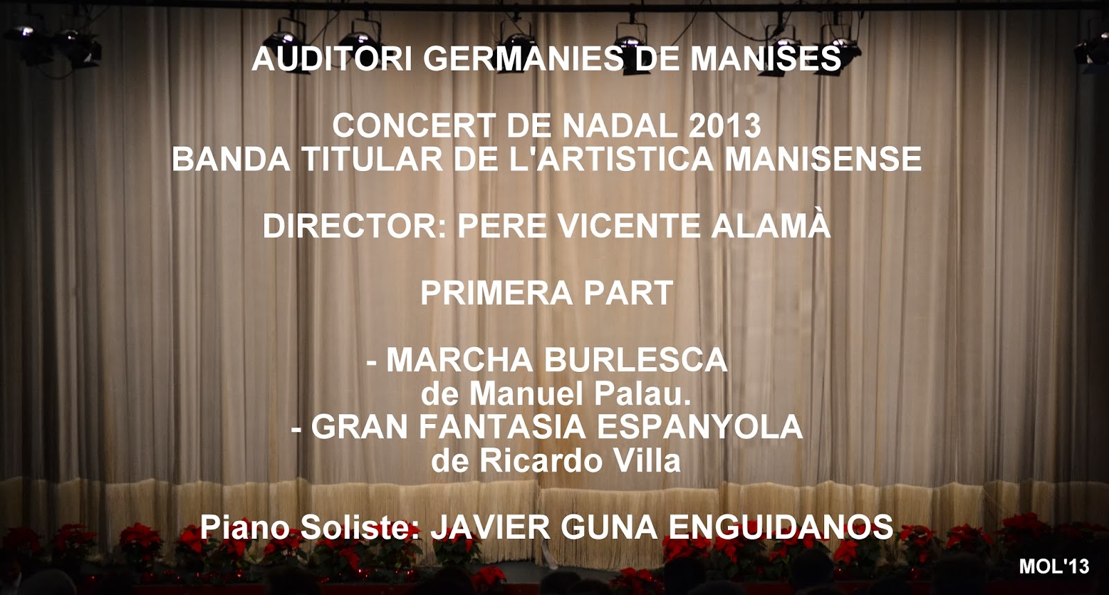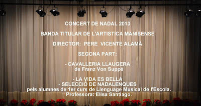 La primera de ellas, para recordarnos que tenemos una de las mejores bandas de la Comunidad Valenciana. La segunda que día a día se van superando en su profesionalidad-amateur en las obras que nos ofrecen, la tercera ha servido para que sean presentados los nuevos miembros de la banda y por último la cuarta, para que los más pequeños, lo que integran la Escuela que dirige Elisa Santiago, nos hayan ofrecido unas canciones navideñas-villancicos, acompañados por la banda.