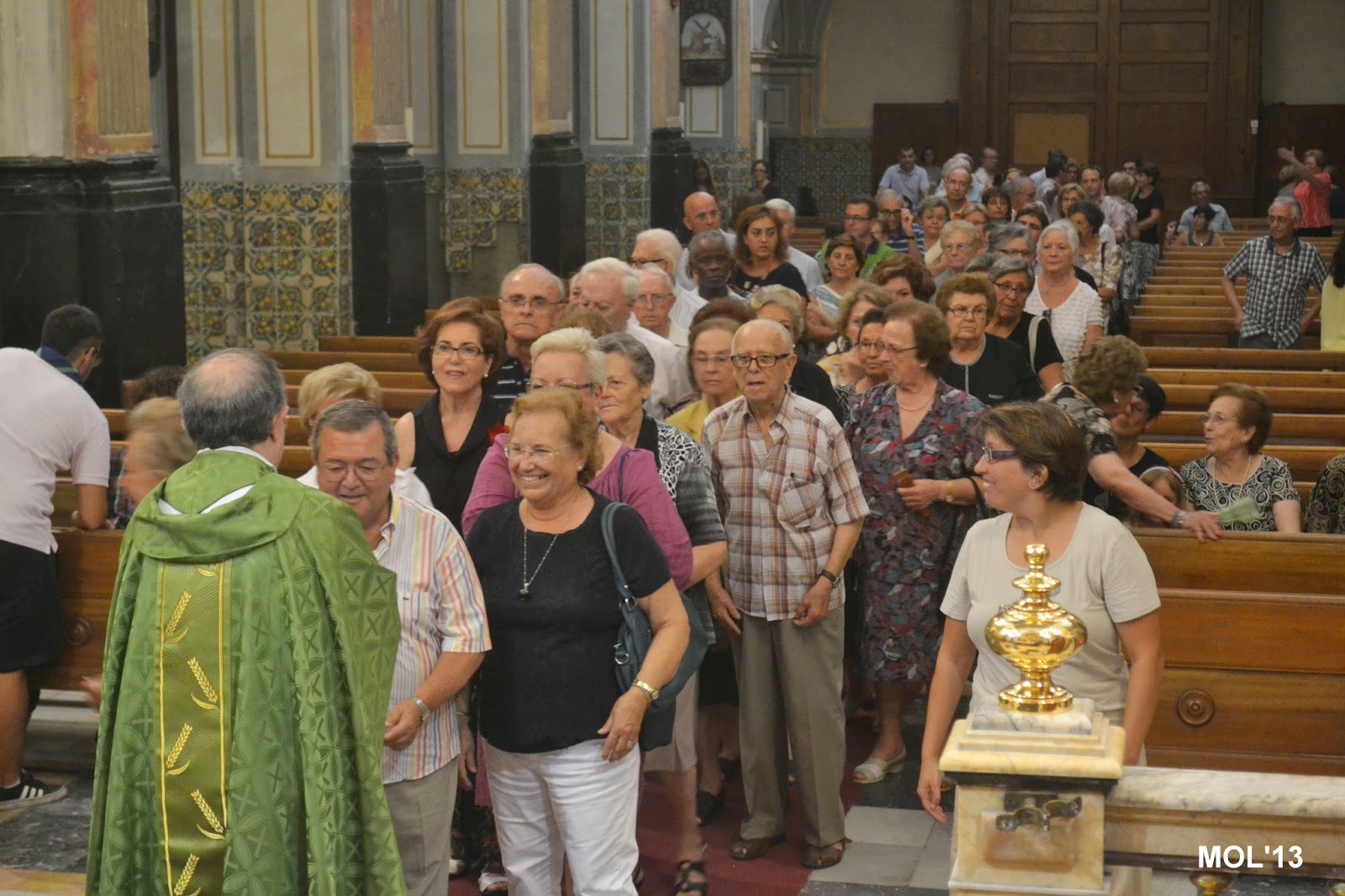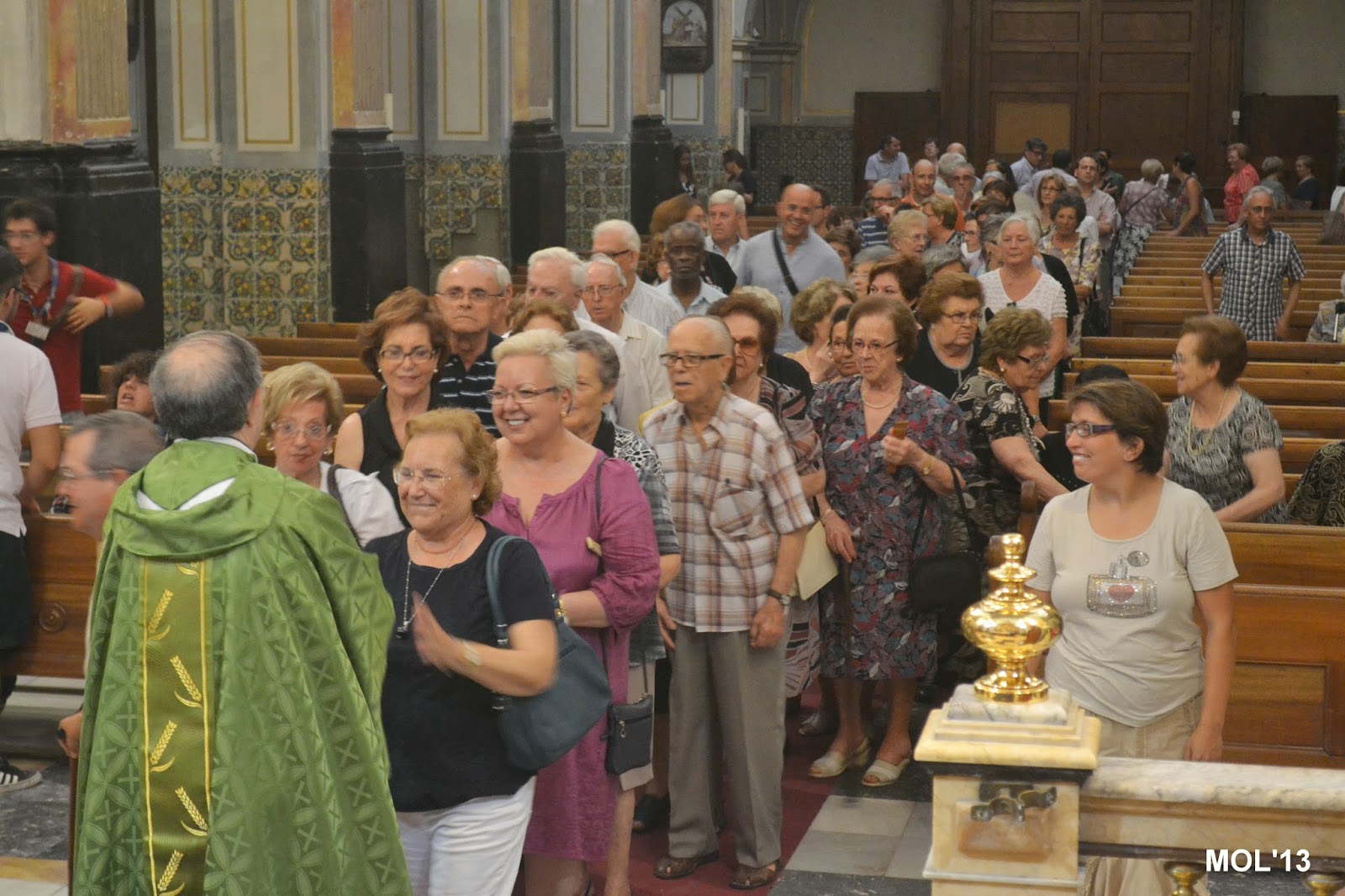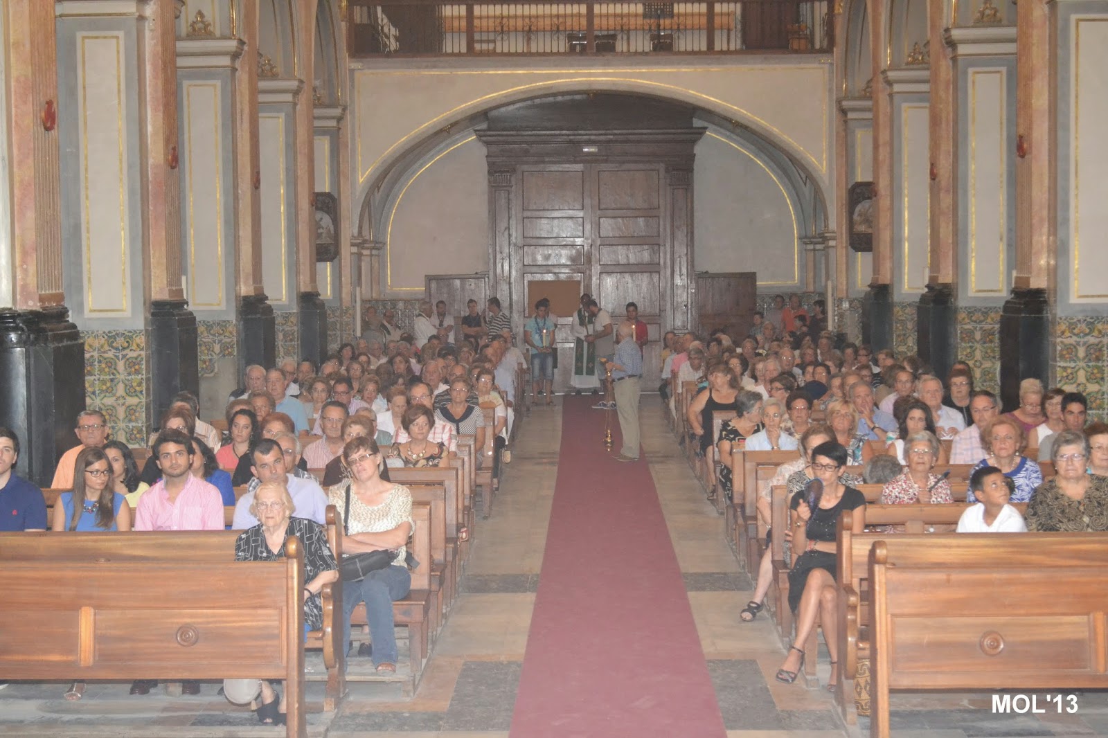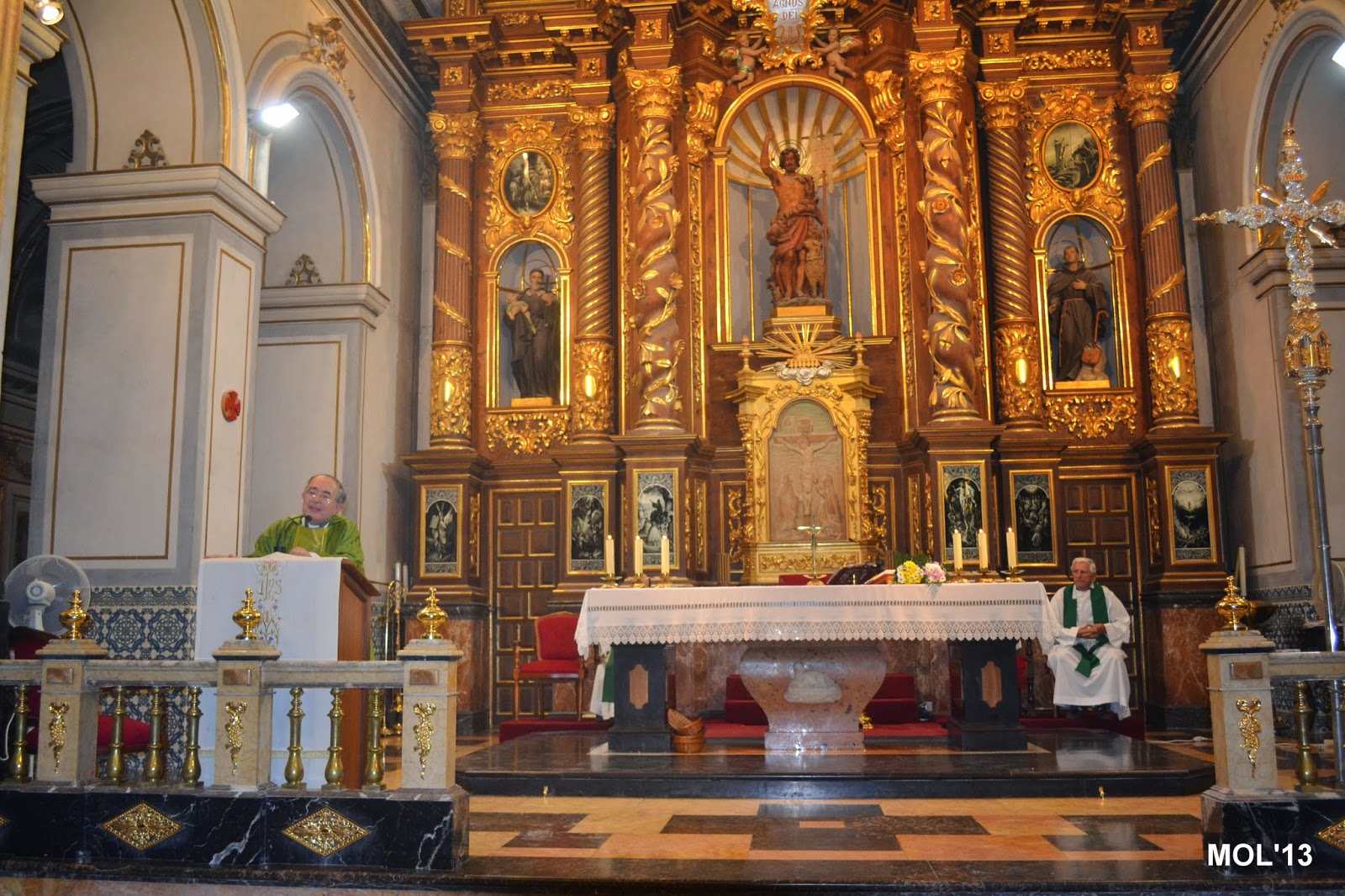 La Iglesia -para la fecha que era- estaba llena de feligreses que querían despedirse de Don Valentín, después de los muchos años que lleva entre nosotros. Estaba acompañado de sacerdotes amigos y de Don Juan Ávila, sacerdote colombiano que está ayudando en las labores sacerdotales en nuestra parroquia, al mismo tiempo que realiza sus estudios en la Universidad de Valencia, antes de partir (son 2 años) en el 2014, para su país.