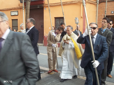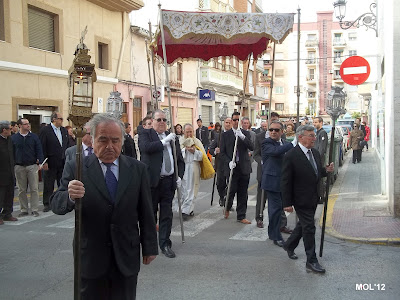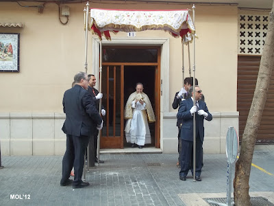 Ayer, lunes día 16 de Abril, tuvo lugar en Manises el Tradicional COMBREGAR D'MPEDITS, que todos los años la Parroquia de San Juan Bautista celebra, con el fin de acercar la Comunión a todos aquellos feligreses de la Parroquia que no pueden acudir a la Iglesia, por motivos de salud.