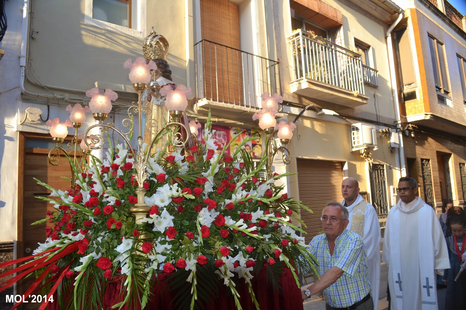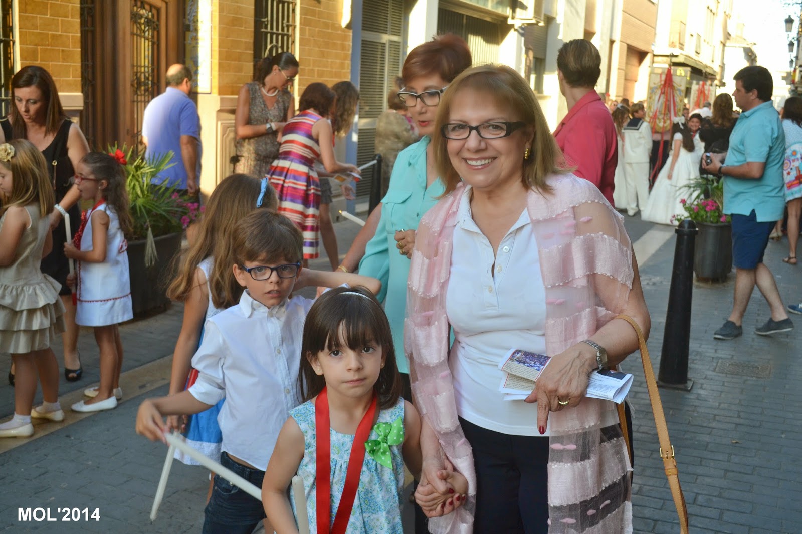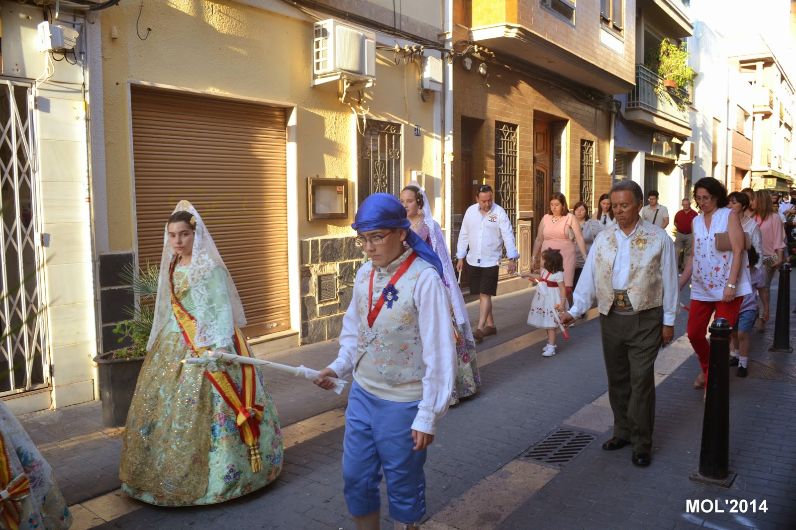 Una vez terminada la Misa dio comienzo la Procesión, el anda -con la imagen del Niño, que había presidido la Santa Misa- y que durante todo el año está en el altar que se inauguró en la Parroquia de San Juan Bautista el día 22 de Enero de 1984, ESTE AÑO SE CUMPLE EL TREINTA ANIVERSARIO, y fue con motivo del traslado del "Convent de Les Carmelites" a nuestra parroquia. El altar, situado en el lateral izquierdo, mirando al Altar Mayor, consiste en un panel de azulejos hecho por la firma de Julián Vilar Esteve de Manises y pintado por el ceramista José Miguel Segarra (R.I.P.), del que en breve ofreceré su biografía.