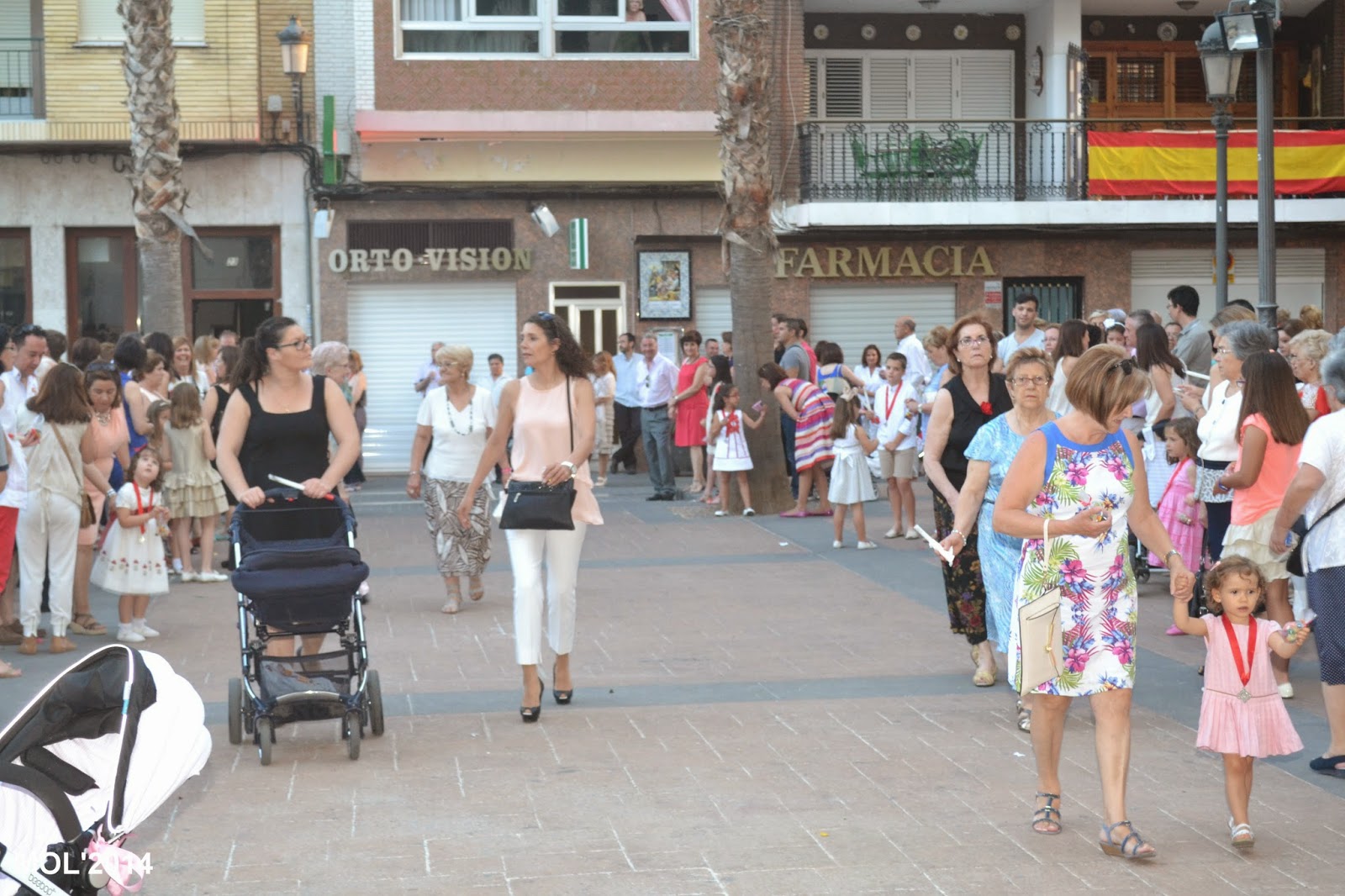 Una vez terminada colocadas las niñas y niños, dio comienzo de procesión cuyo itinerario fue: Carrer Major, Cervantes, Retor Català, Plaça del Castell, Sagrari, Bisbe Soler i Carrer Major fins a la Iglesia.